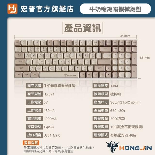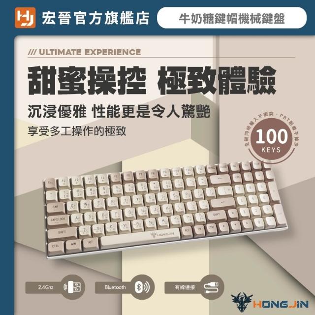 HONG JIN宏晉 五模無線機械式鍵盤 牛奶糖球型鍵帽 PBT熱昇華 球型鍵帽 熱拔插 無線 藍牙2.4G 五模組