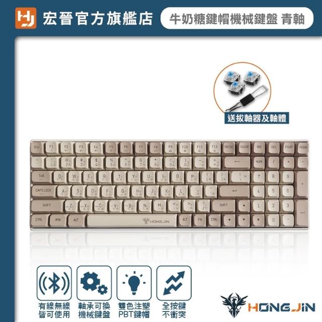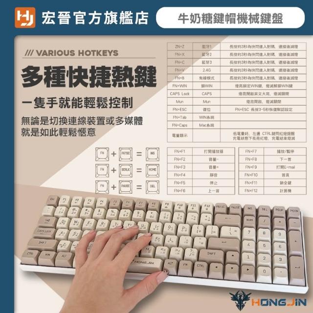 HONG JIN宏晉 五模無線機械式鍵盤 牛奶糖球型鍵帽 PBT熱昇華 球型鍵帽 熱拔插 無線 藍牙2.4G 五模組