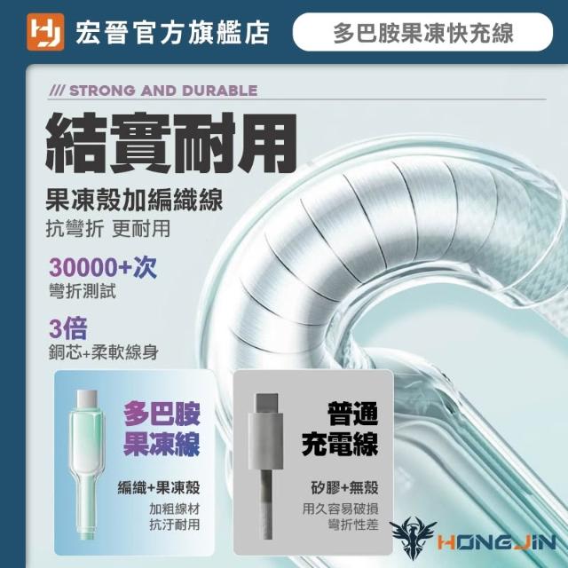HONG JIN宏晉 多巴胺果凍快充線 65W 手機充電線 多色可選 傳輸線 尼龍編織 抗拉扯 type-c充電線 水果充電線 時尚有型