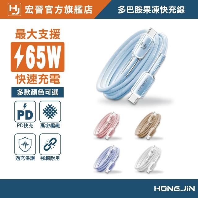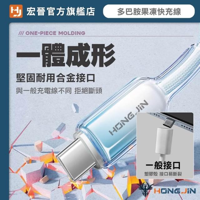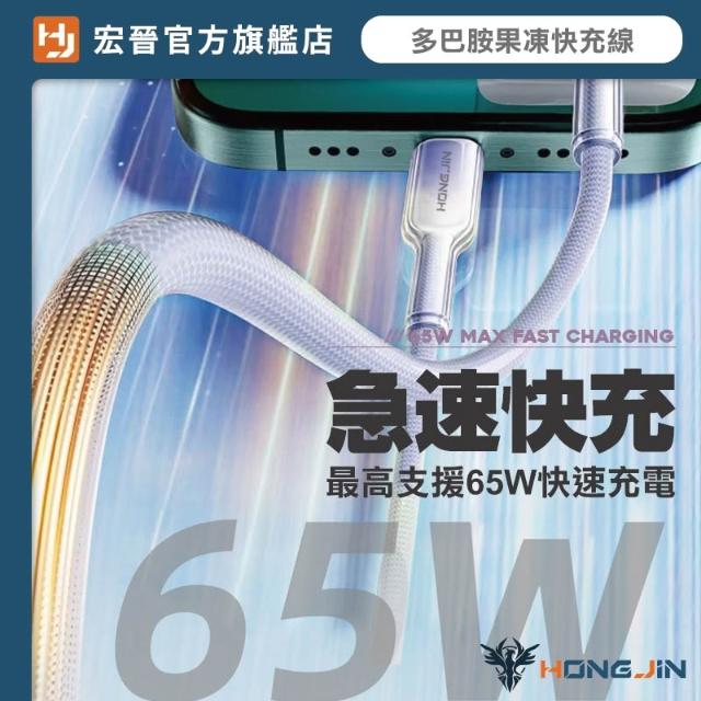 HONG JIN宏晉 多巴胺果凍快充線 65W 手機充電線 多色可選 傳輸線 尼龍編織 抗拉扯 type-c充電線 水果充電線 時尚有型