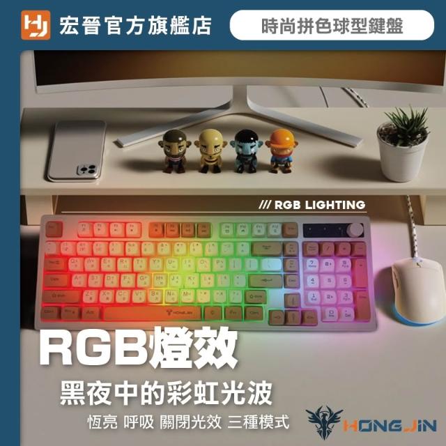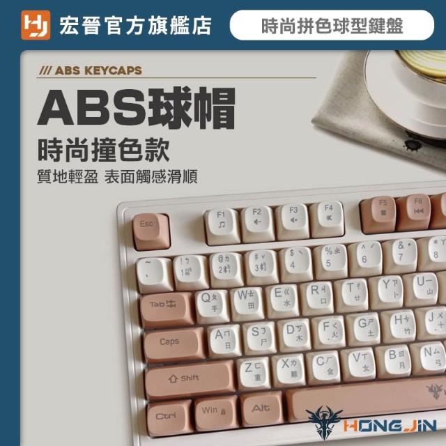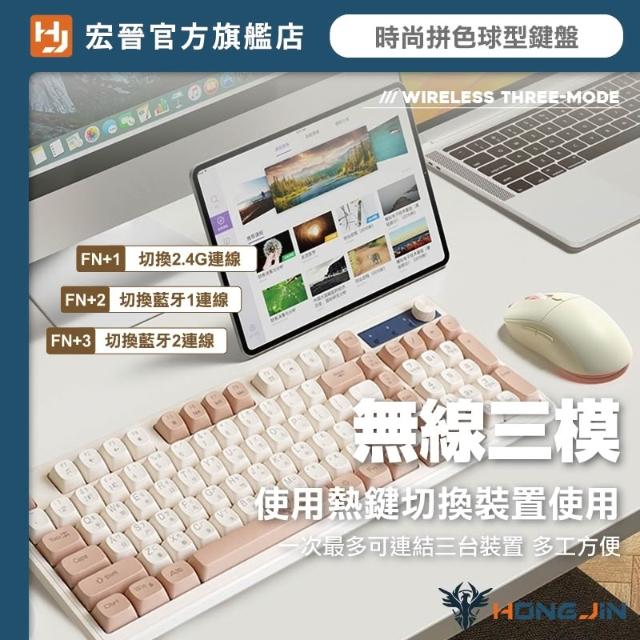 HONG JIN宏晉 咖啡薄膜無線鍵盤 三模無線連線 19鍵無衝突 球型鍵帽 旋鈕控制 Type-C 呼吸背光 一鍵切換 辦公遊戲雙享