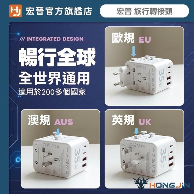 HONG JIN宏晉 35W旅行轉接頭 旅行萬用充電器 萬國充電頭 PD快充 35W轉接頭 支援英 歐 澳 插頭 USB雙孔