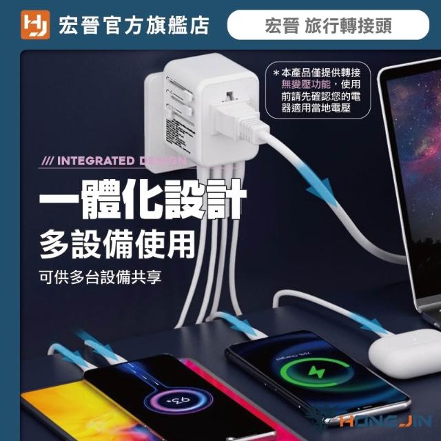 HONG JIN宏晉 35W旅行轉接頭 旅行萬用充電器 萬國充電頭 PD快充 35W轉接頭 支援英 歐 澳 插頭 USB雙孔