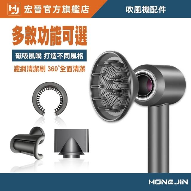 HONG JIN宏晉 吹風機專用 磁吸吹嘴 磁吸配件組 防飛翹造型 烘罩風嘴 360度清潔刷 沙龍級 快速造型