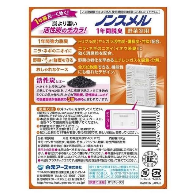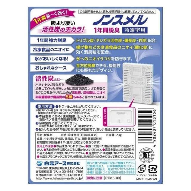 白元日本地球製藥 活性碳冰箱除臭劑20/25g
