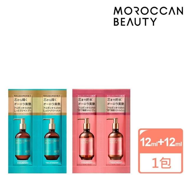 MOROCCAN BEAUTY摩洛哥 堅果油 洗護髮試用組 免沖洗 髮膜 護髮 護髮素 免沖洗護髮(洗髮精12ml+護髮素12ml/日本製)