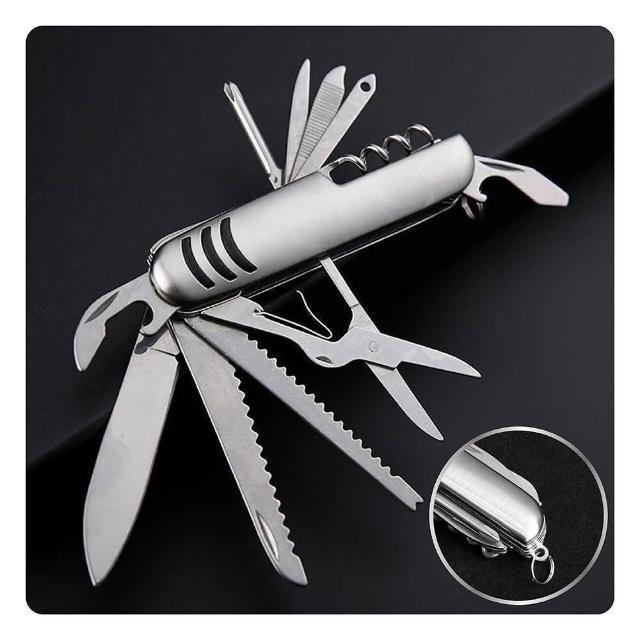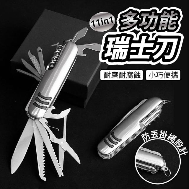 舒米好物 多功能摺疊 不鏽鋼 瑞士刀 11用(剪刀 摺疊刀 開瓶器 螺絲起子 露營 野外求生 防災 地震包)