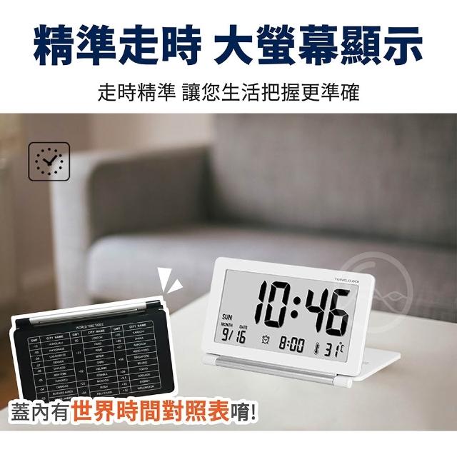 折折小舖 翻蓋式 電子時鐘 旅行 迷你鬧鐘 溫度顯示 貪睡功能 便攜摺疊鬧鐘 出差 旅遊 居家辦公 溫度