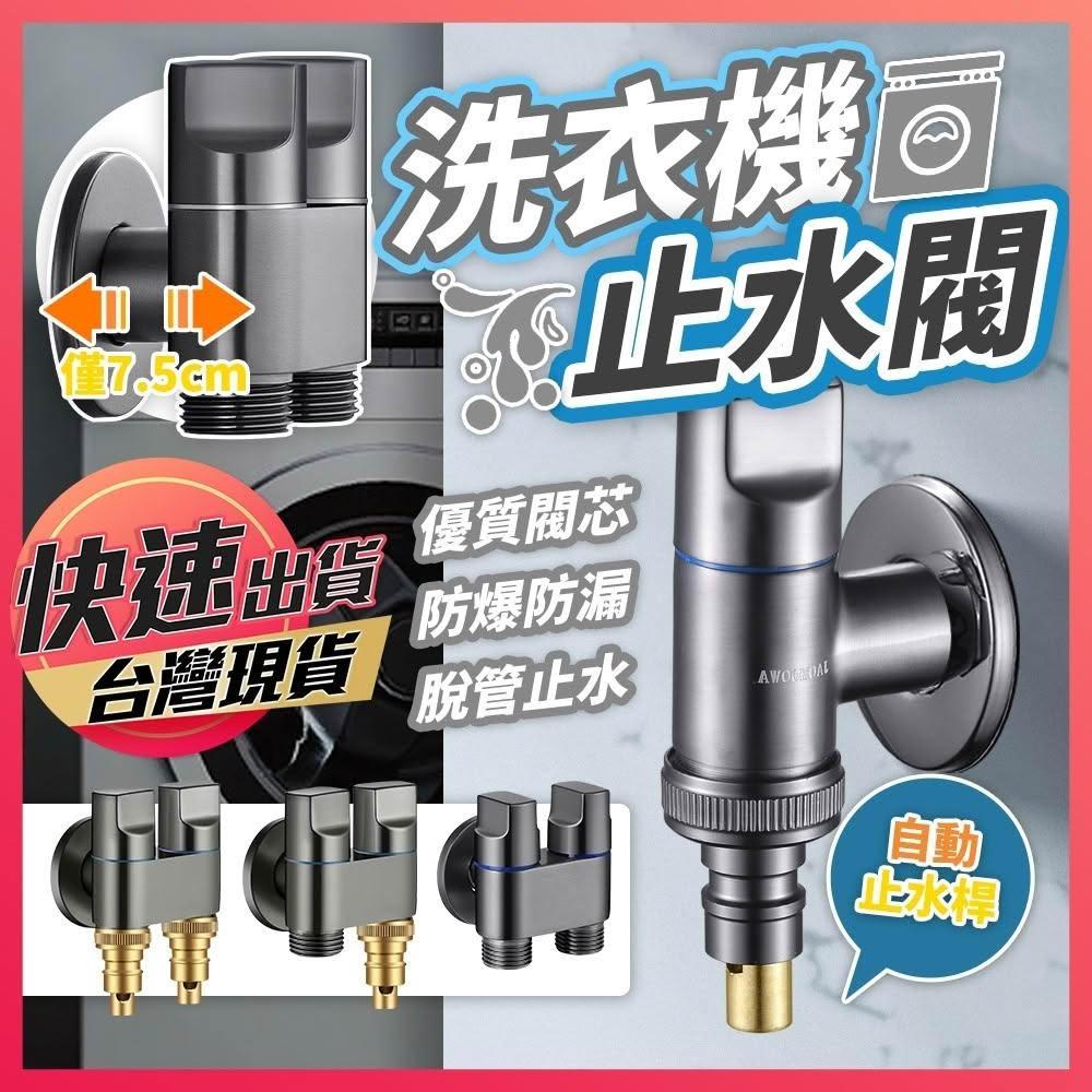 洗衣機止水閥 止水閥 止水桿 防脫管水龍頭 洗衣機水龍頭 自動止水閥 超短洗衣機水龍頭 自動止水水龍頭 一進二出角閥