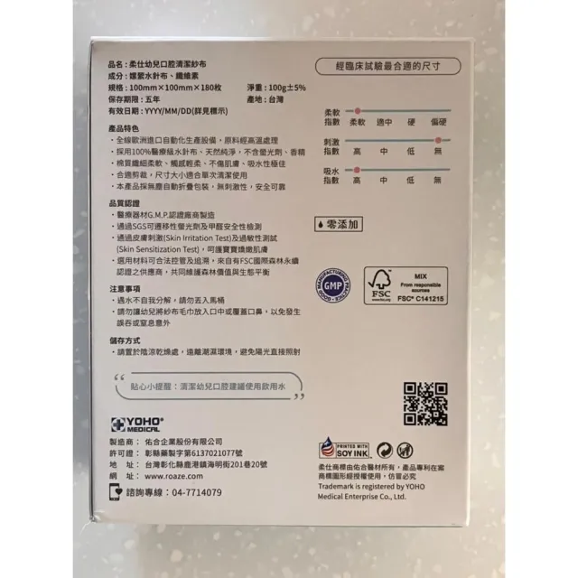 Roaze 柔仕柔仕 Roaze 幼兒口腔清潔紗布 180抽 清淨棉 乾濕兩用毛巾 紗布巾 拭口巾 口腔清潔棉