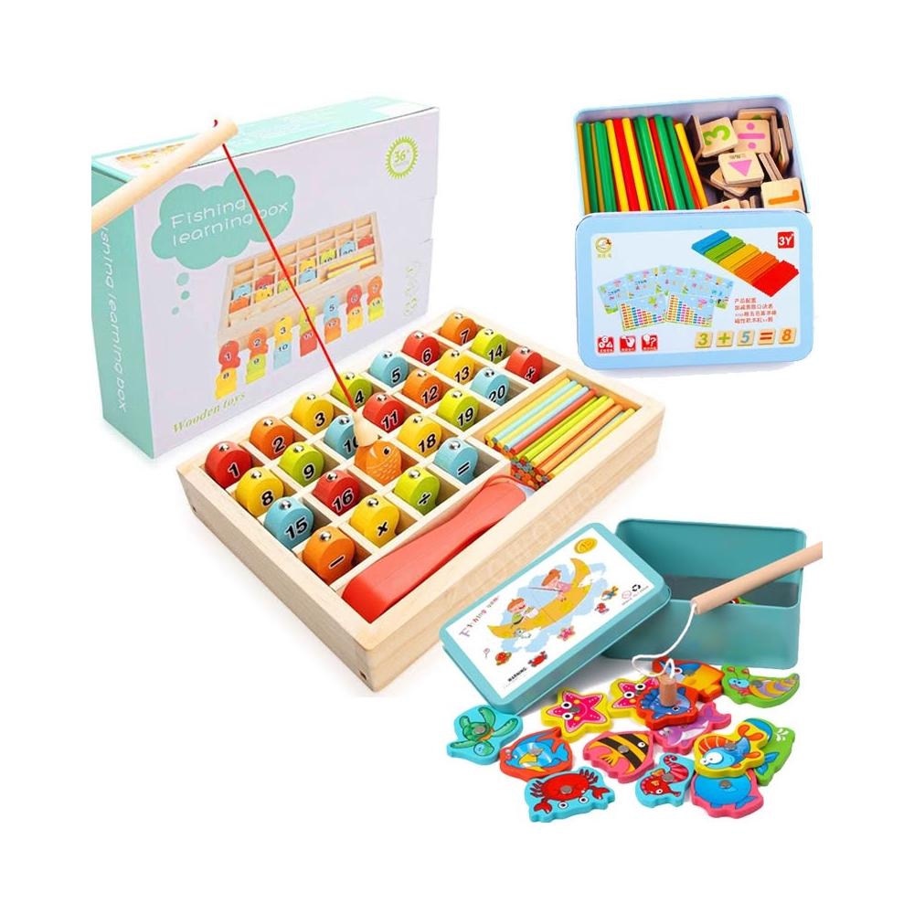 磁性釣魚 鐵盒 木質玩具 磁力釣魚 釣魚玩具 學習盒 算術棒 數字積木學習盒 練習算數 益智教具 9219