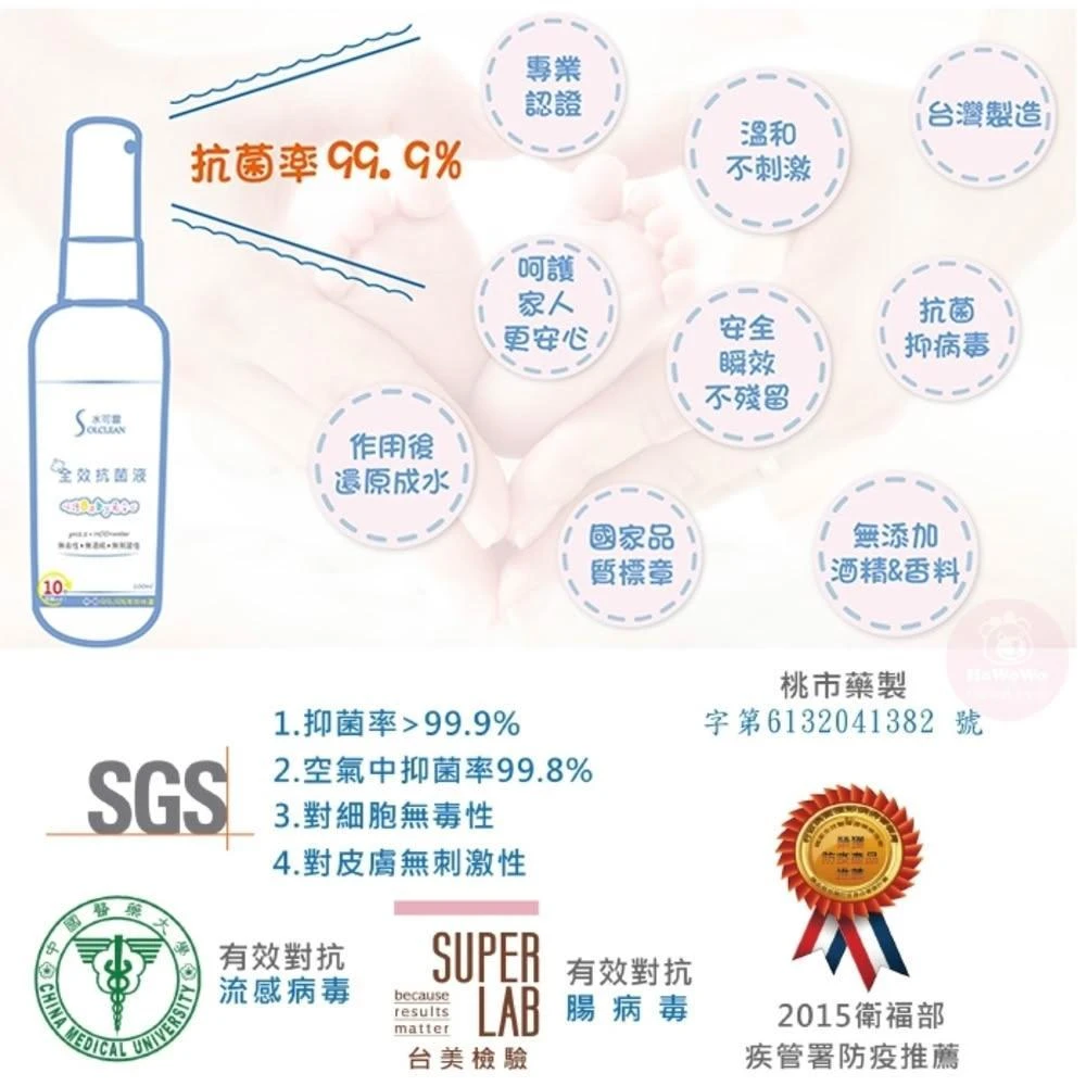SOLCLEAN 水可靈水可靈 全方位消毒抗菌液 2公升 次氯酸 次氯酸水 居家消毒 消毒噴霧 剋菌液 寵物除臭 腸病毒 諾羅病毒 流感 剋星