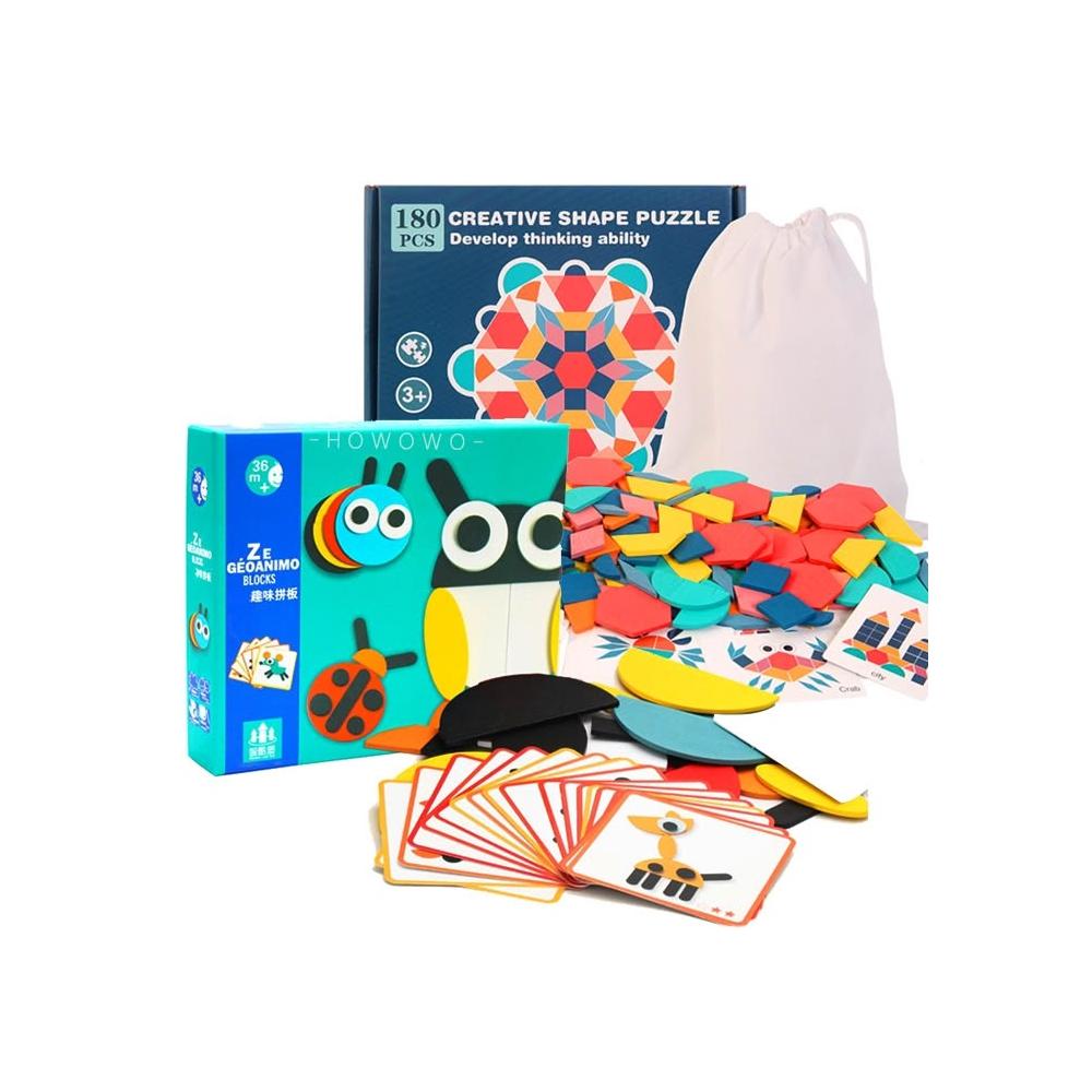 木製拼圖 幾何七巧板 附收納袋 兒童立體拼圖 益智玩具 早教 手抓板 認知板