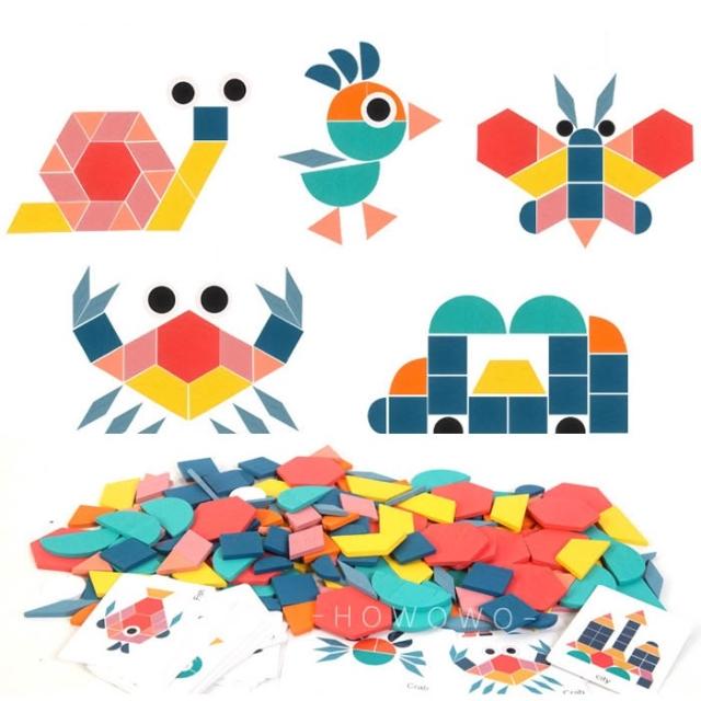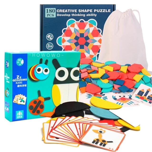木製拼圖 幾何七巧板 附收納袋 兒童立體拼圖 益智玩具 早教 手抓板 認知板