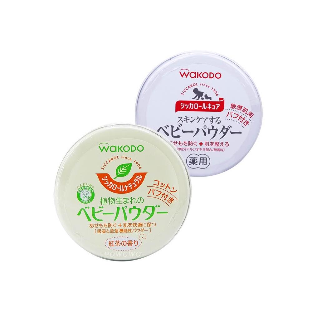 WAKODO 和光堂日本 和光堂 WAKODO 天然植物玉米爽身粉 附粉撲 寶寶痱子粉 紅茶香爽身粉