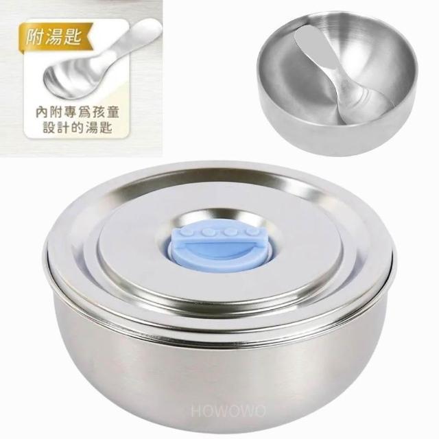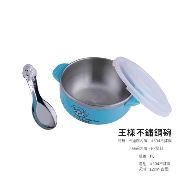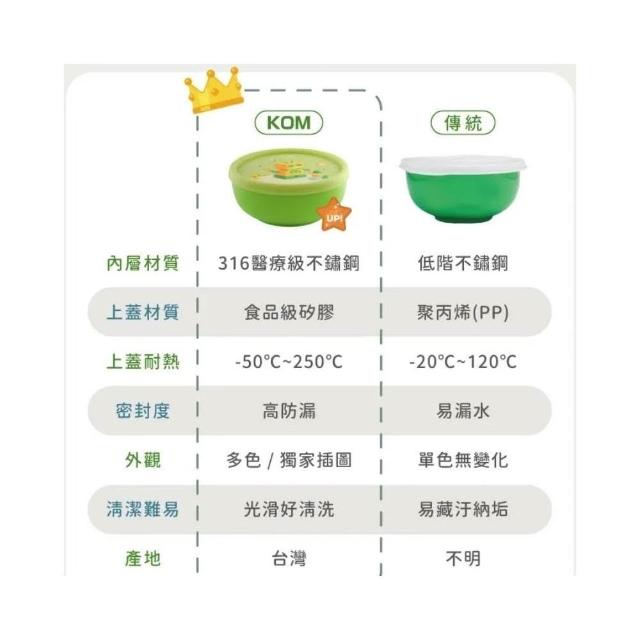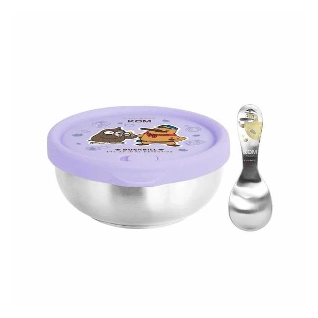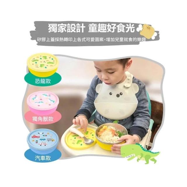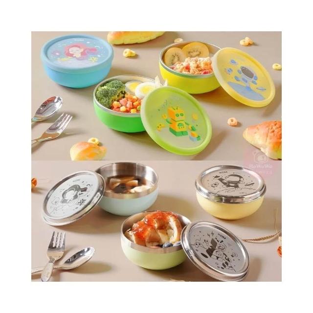 KOMKOM 316不鏽鋼 兒童隔熱碗 附湯匙 矽膠上蓋 達克比 雙層隔熱碗 幼兒園碗 兒童碗 三色碗 王樣