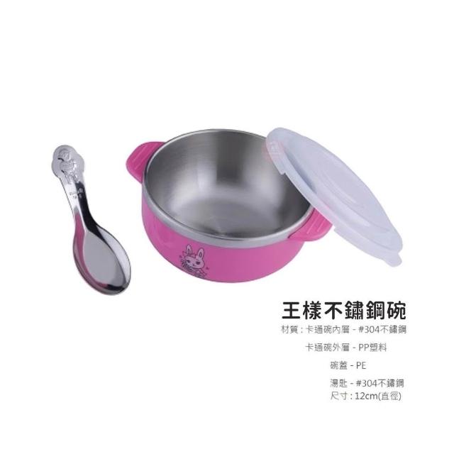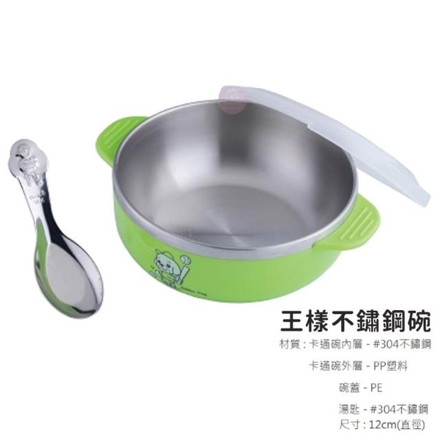 KOMKOM 316不鏽鋼 兒童隔熱碗 附湯匙 矽膠上蓋 達克比 雙層隔熱碗 幼兒園碗 兒童碗 三色碗 王樣