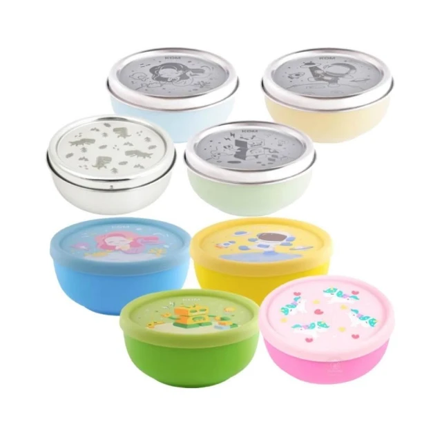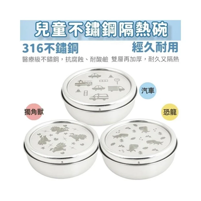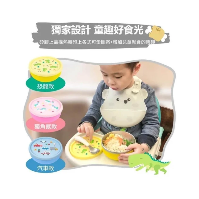 KOMKOM 316不鏽鋼 兒童隔熱碗 附湯匙 矽膠上蓋 雙層隔熱碗 幼兒園碗 兒童碗 三色碗 王樣