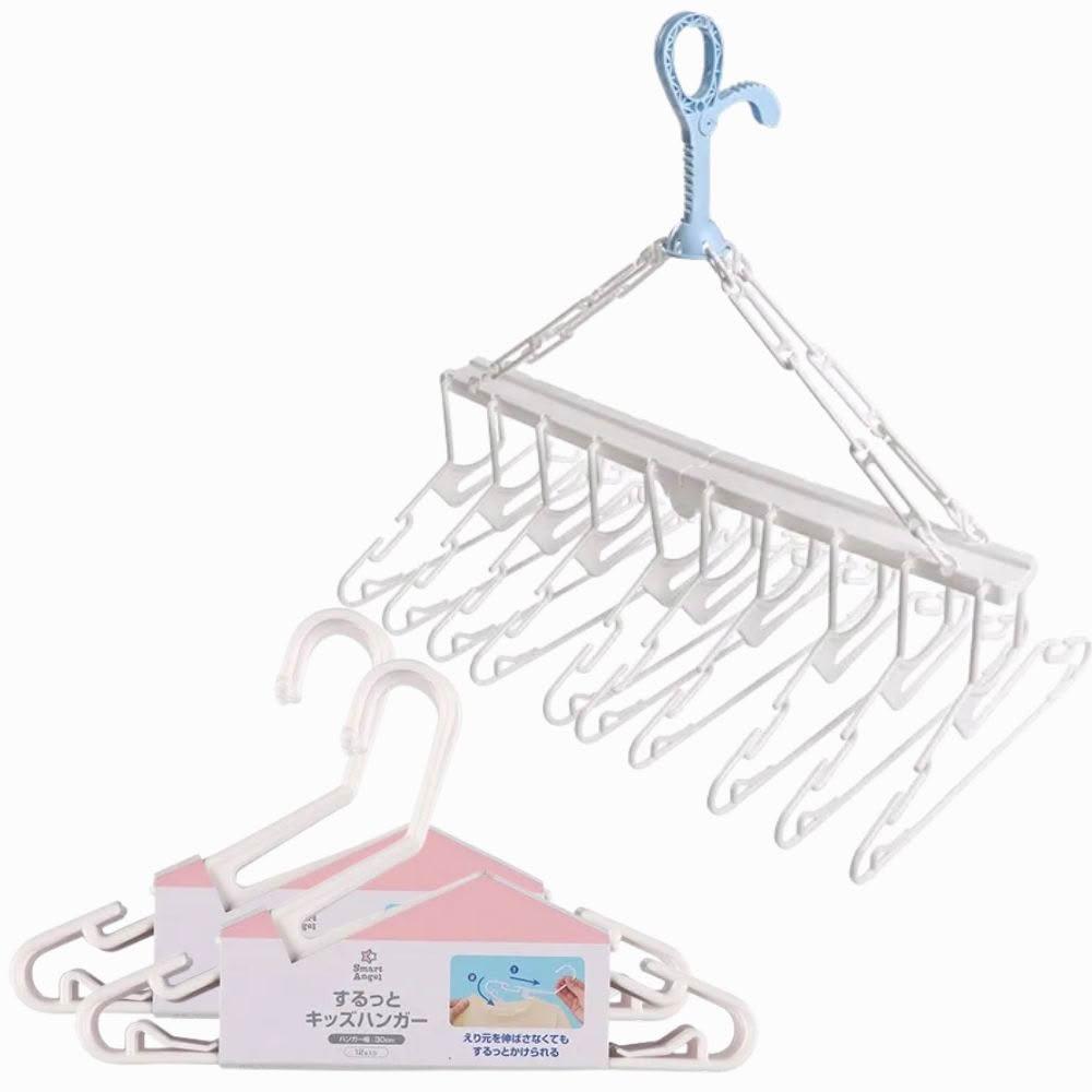 西松屋日本 西松屋 Smart Angel 兒童衣架 可調式 不傷領衣架 抗菌 10連式衣架 防滑衣架 寶寶衣架 伸縮型褲架