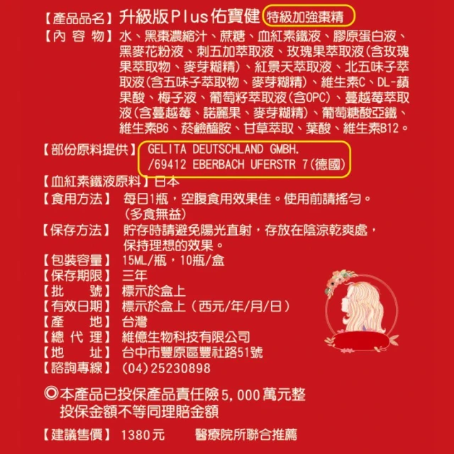 維億 佑寶健大棗精華 特級加強大棗精 第一代 (10入/盒) 血紅素鐵液 膠原蛋白 棗精