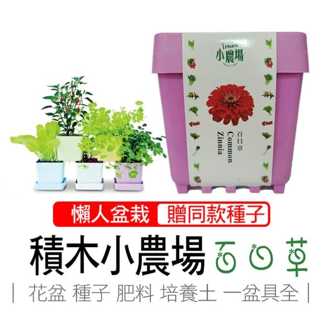 iPlant積木盆栽-百日草(內含種子培養土肥料花盆)
