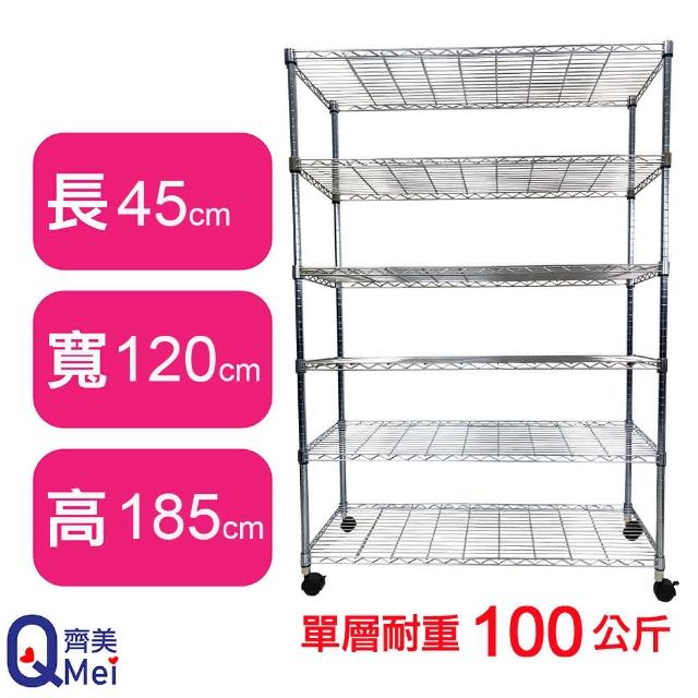 Qi Mei 齊美鐵力士鍍鉻萬用收納六層架120x45x185cm-附輪(鐵架 收納架 置物架 電器架 床邊櫃 鞋架)
