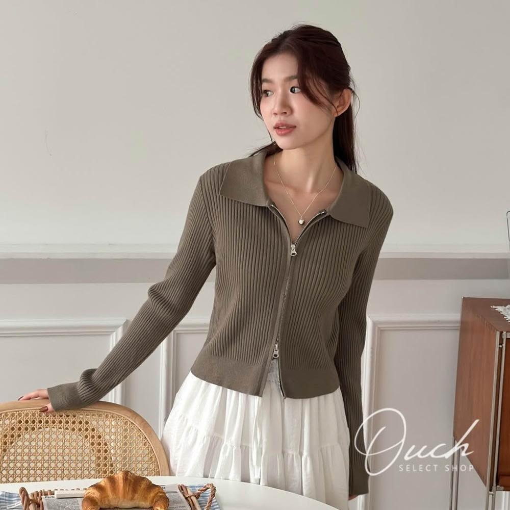 Ouch顏值有在線(5 colors)螺紋雙拉鍊上衣 翻領 長袖上衣 短版上衣 外套 女裝 C158
