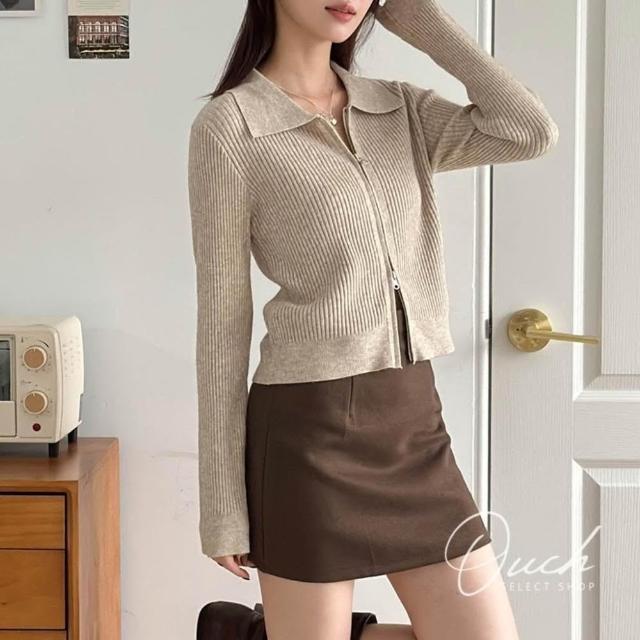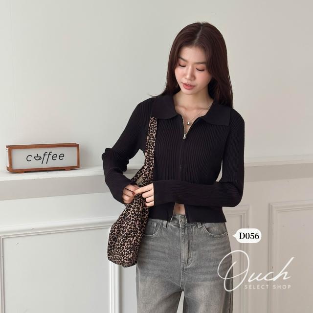 Ouch顏值有在線(5 colors)螺紋雙拉鍊上衣 翻領 長袖上衣 短版上衣 外套 女裝 C158