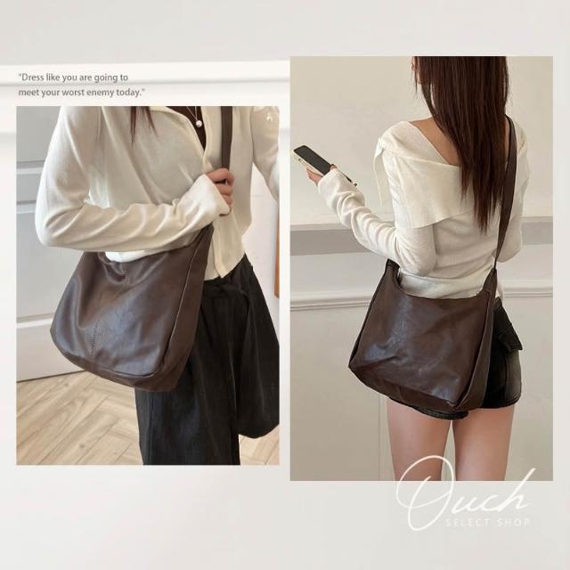 Ouch美拉德復古包(2 colors) 金扣復古紋托特包 斜背包 側背包 女生包包 大容量 Z021