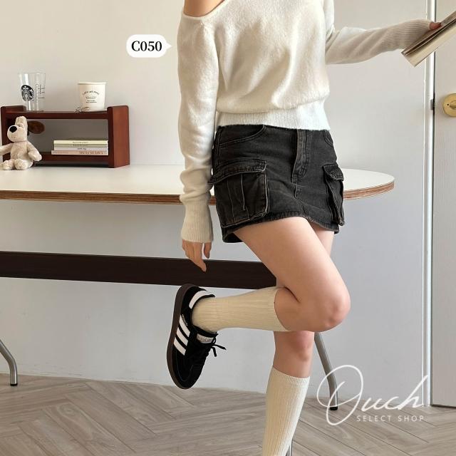 Ouch酷女孩的S曲線(3 colors)仿舊口袋牛仔短裙 牛仔裙 短裙 A字裙 工裝 E044