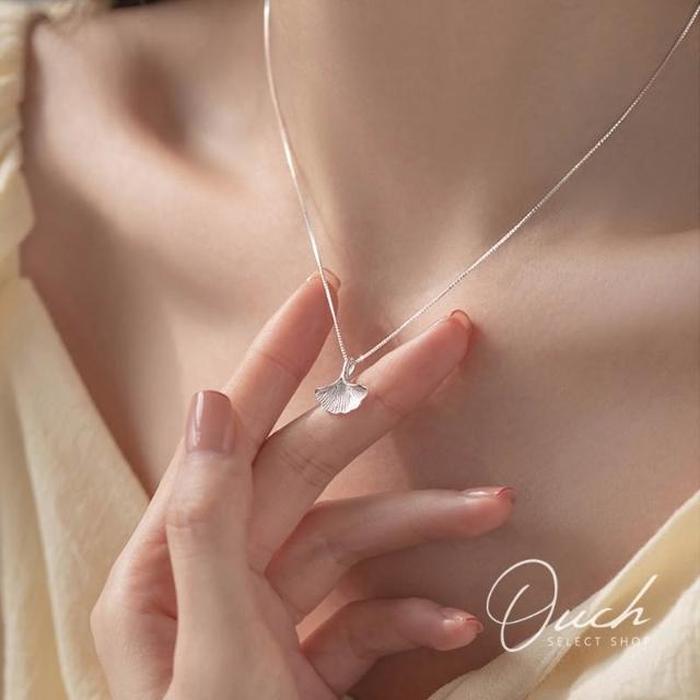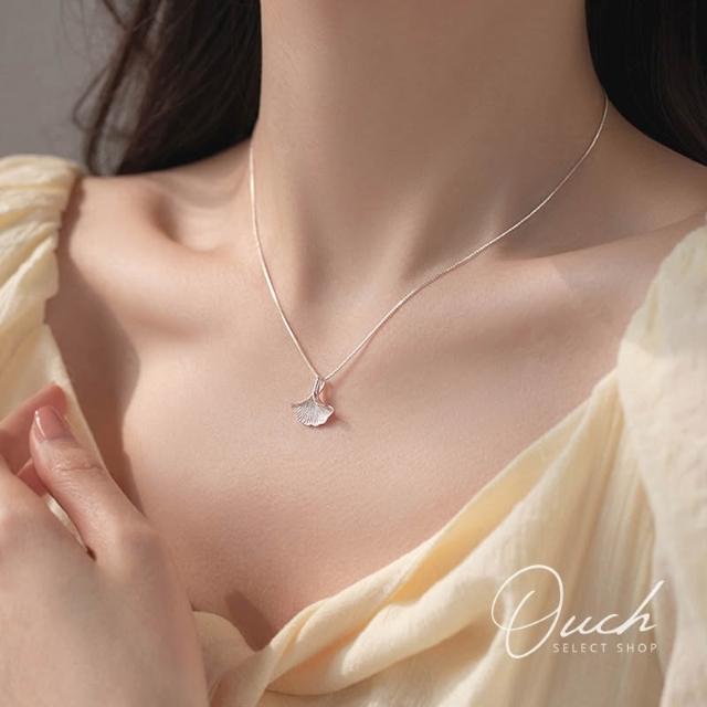 Ouch銀杏葉項鍊 925純銀項鍊 頸鏈 項鏈 鎖骨鍊 低敏項鍊 純銀項鍊 鎖骨鏈 項鍊 925銀 簡約項鍊 飾品 A126