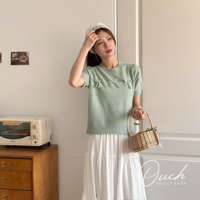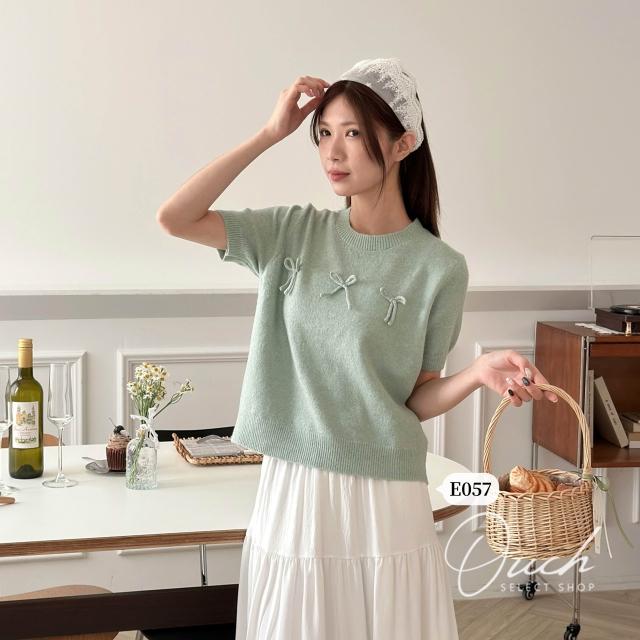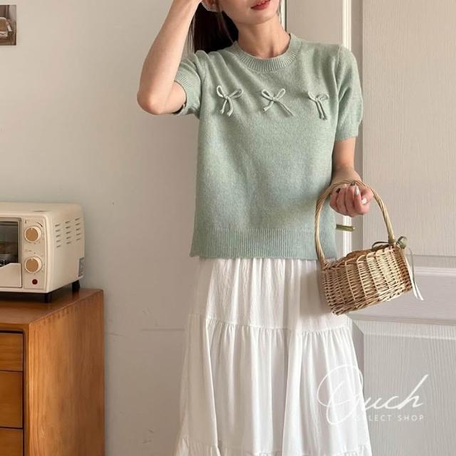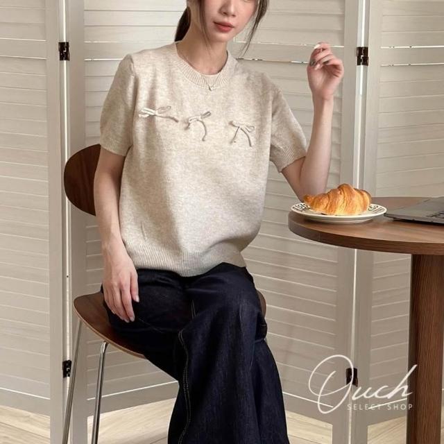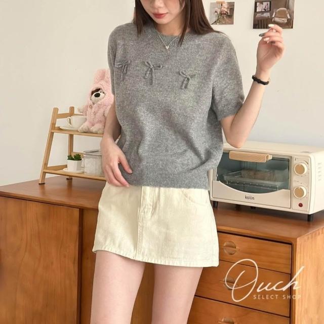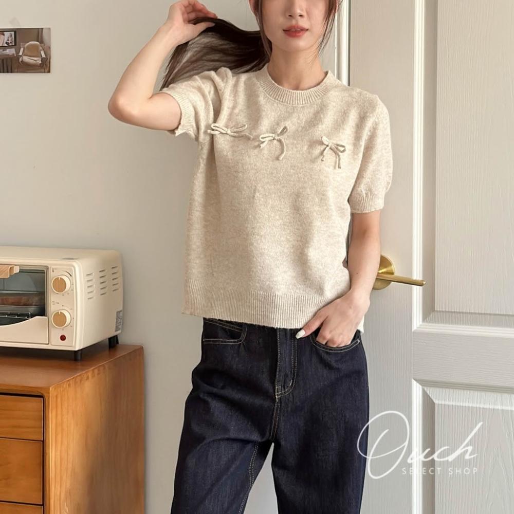 Ouch賣萌討喜針織短袖 (4 colors) 蝴蝶結針織短袖 短袖上衣女 t恤 女裝 B041