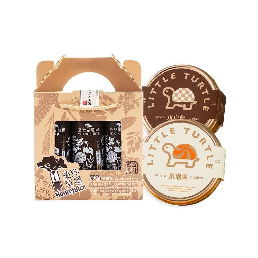 小烏龜美味能量曲奇餅2盒/可選口味(一盒21入) 附提(紙)袋 +漫熬莫爾 麥香原味 莫爾露 養生木耳露一盒(6入)-禮盒組優惠