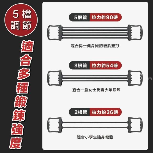 擴胸拉力器 拉力繩 胸肌訓練器(臂肌 腹肌 胸肌 五檔可調節磅數 五管拉力 TPR乳膠)