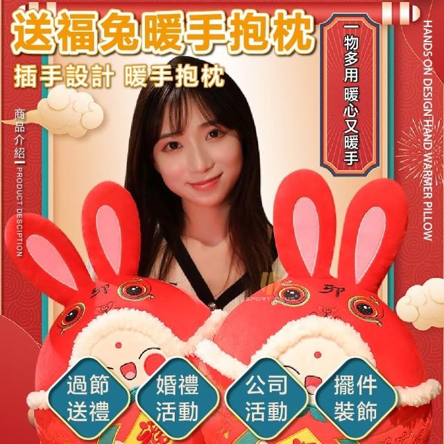 S-SportPlus+暖手抱枕 靠枕 暖手枕 兔子抱枕(兔年報枕 絨毛玩偶 過年抱枕 睡覺抱枕 午睡枕 插手抱枕)