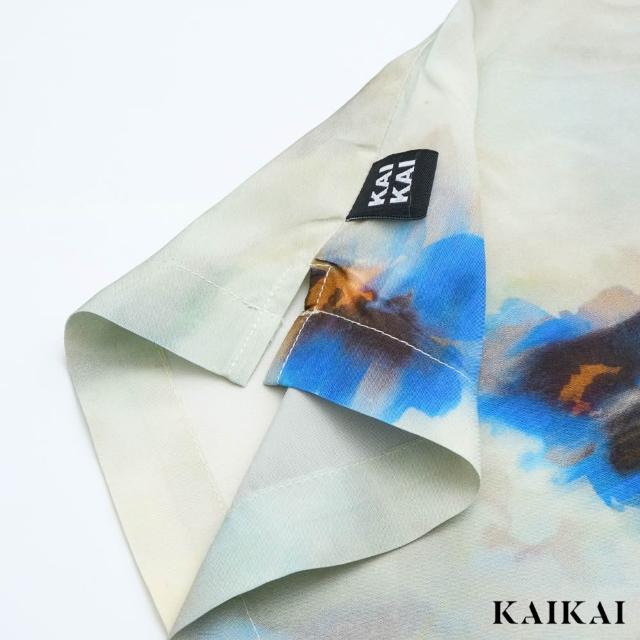 KAI KAI暈染藍花古巴襯衫(男款/女款 印花襯衫 純棉透氣花襯衫 休閒百搭古巴襯衫)
