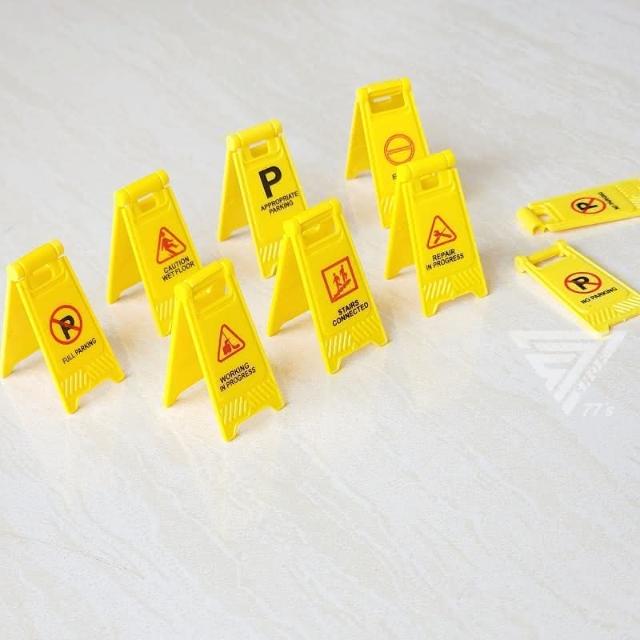 『摺疊警示小立牌/8入』交通路障 警示牌 道路場景 停車場配件 認知玩具 號誌 微型攝影 仿真模型道具 路障