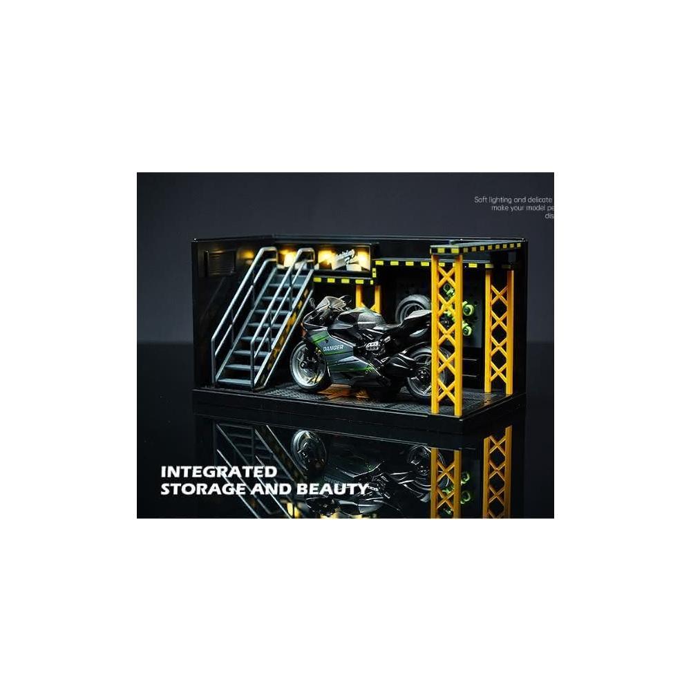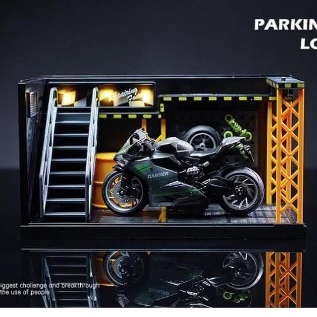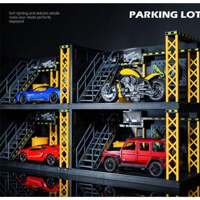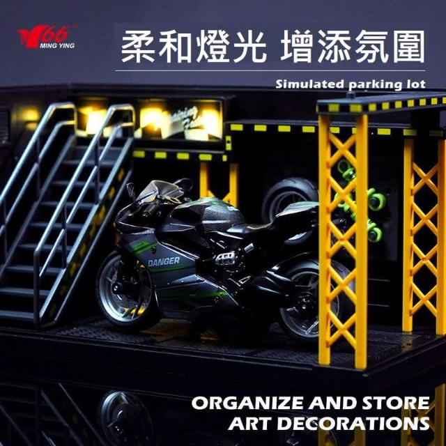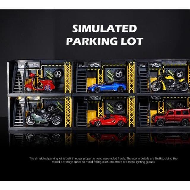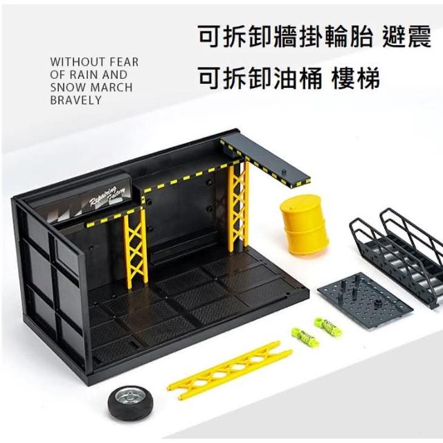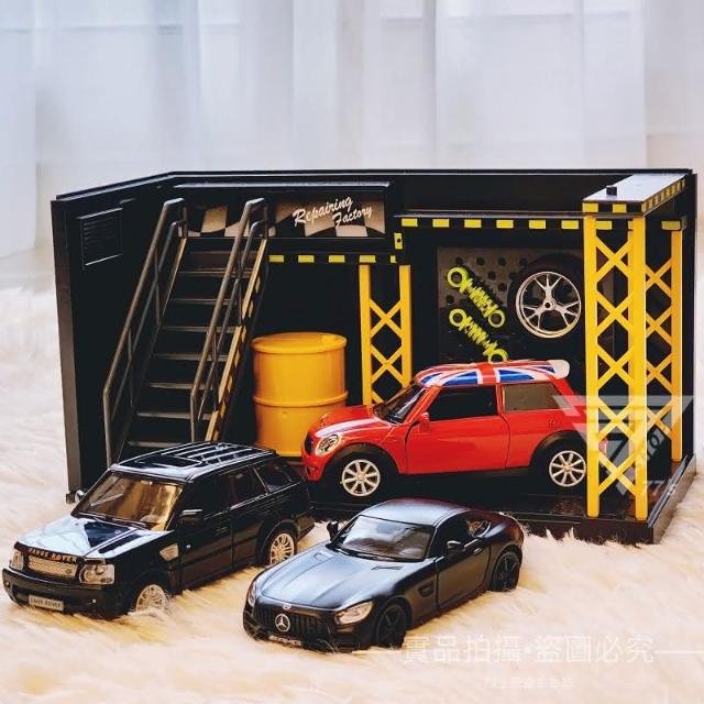 『兒童玩具DIY修車廠帶燈裝卸組合停車場』 維修工廠 修車廠 維修車房 模型車收納 微型攝影 改裝店 帶燈車庫維修場景模型