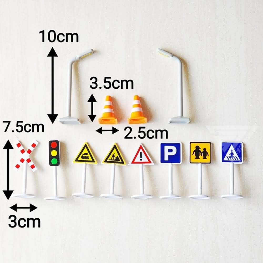 『12件組交通標誌路標/交通路障』 三角錐 紅綠燈 道路場景 停車場配件 路燈 樂高場景 認知玩具 交通號誌(路障玩具 認知玩具)