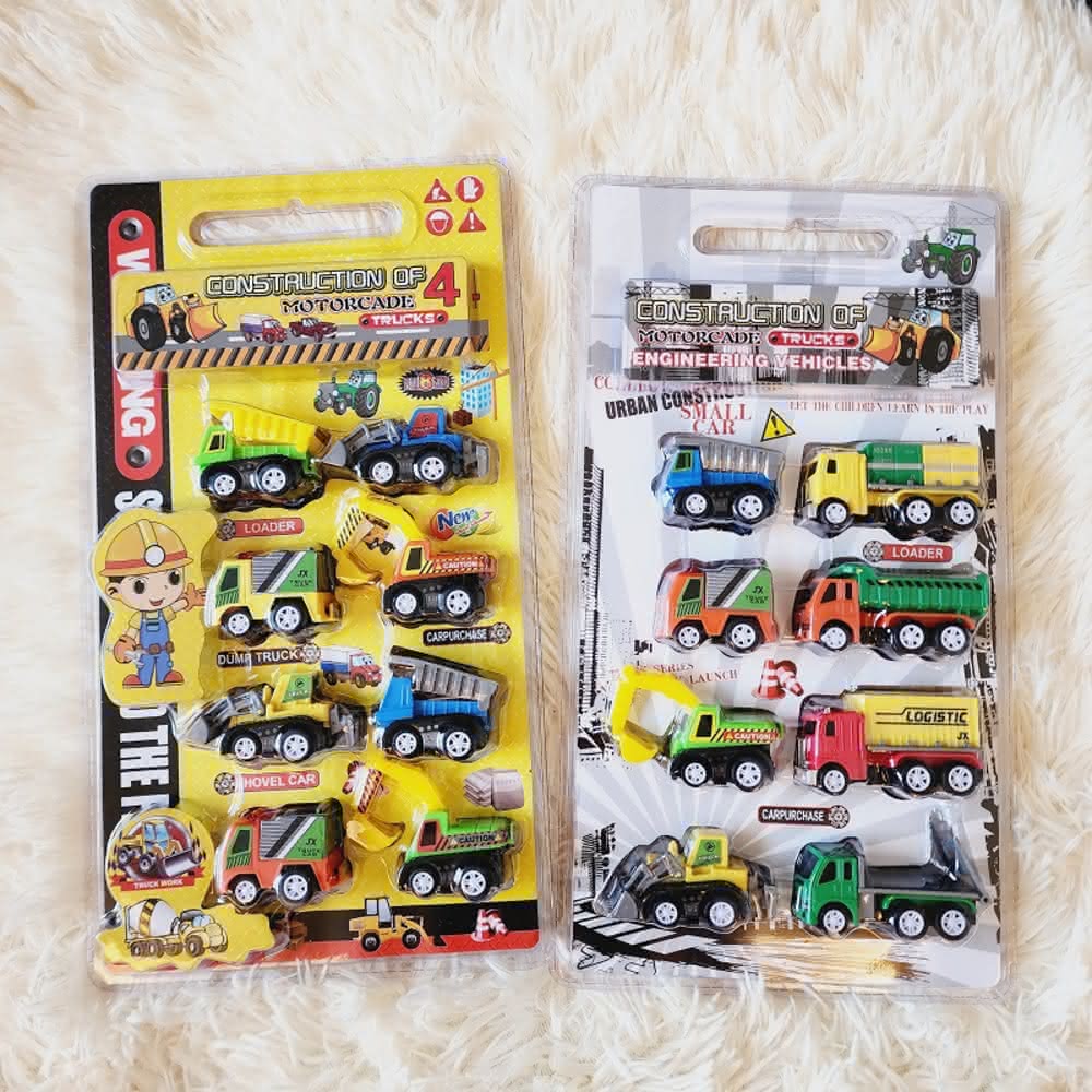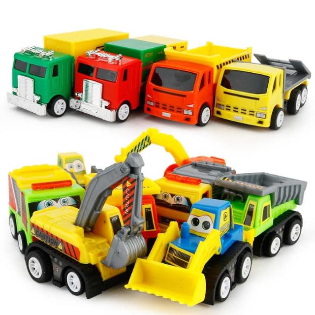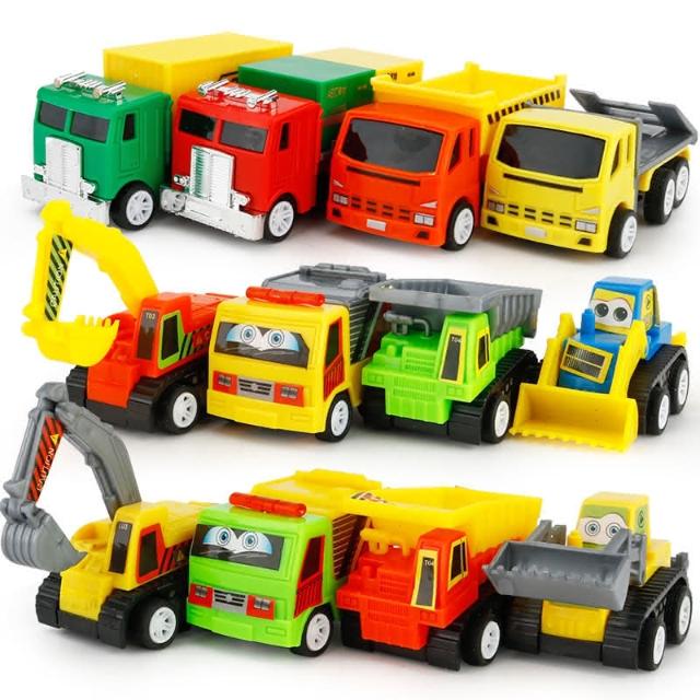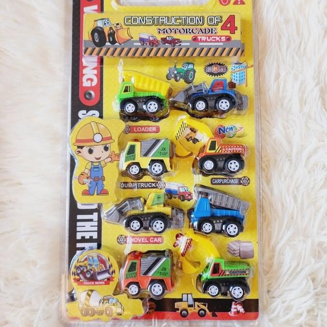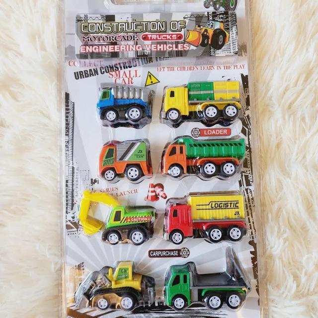 『建設工程車 迴力車 8入』 塑膠工程車 迷你迴力車 怪手 挖土機 砂石車 建設車隊 運輸車隊 小汽車 玩具車 水泥車(Q版玩具車 小車)