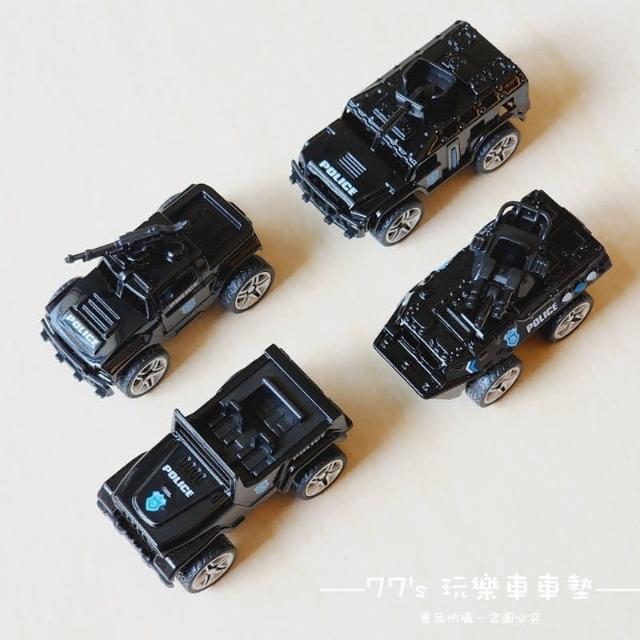 『黑色軍事警車合金車/4入一盒』 1:64 模型玩具車 軍事車 回力越野車 警車 110 越野車玩具 戰車 迴(玩具車 小汽車 警車)