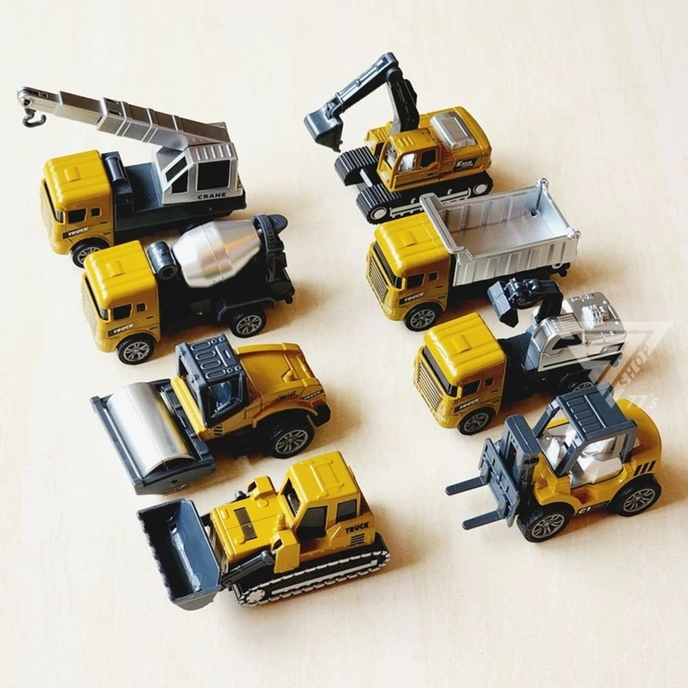 『金屬色工程車/4台一組』 合金工程車玩具 細節可動 玩具車 吊車 怪手 挖掘車 砂石車 鏟土機 水泥車 堆高(工程車 玩具車)