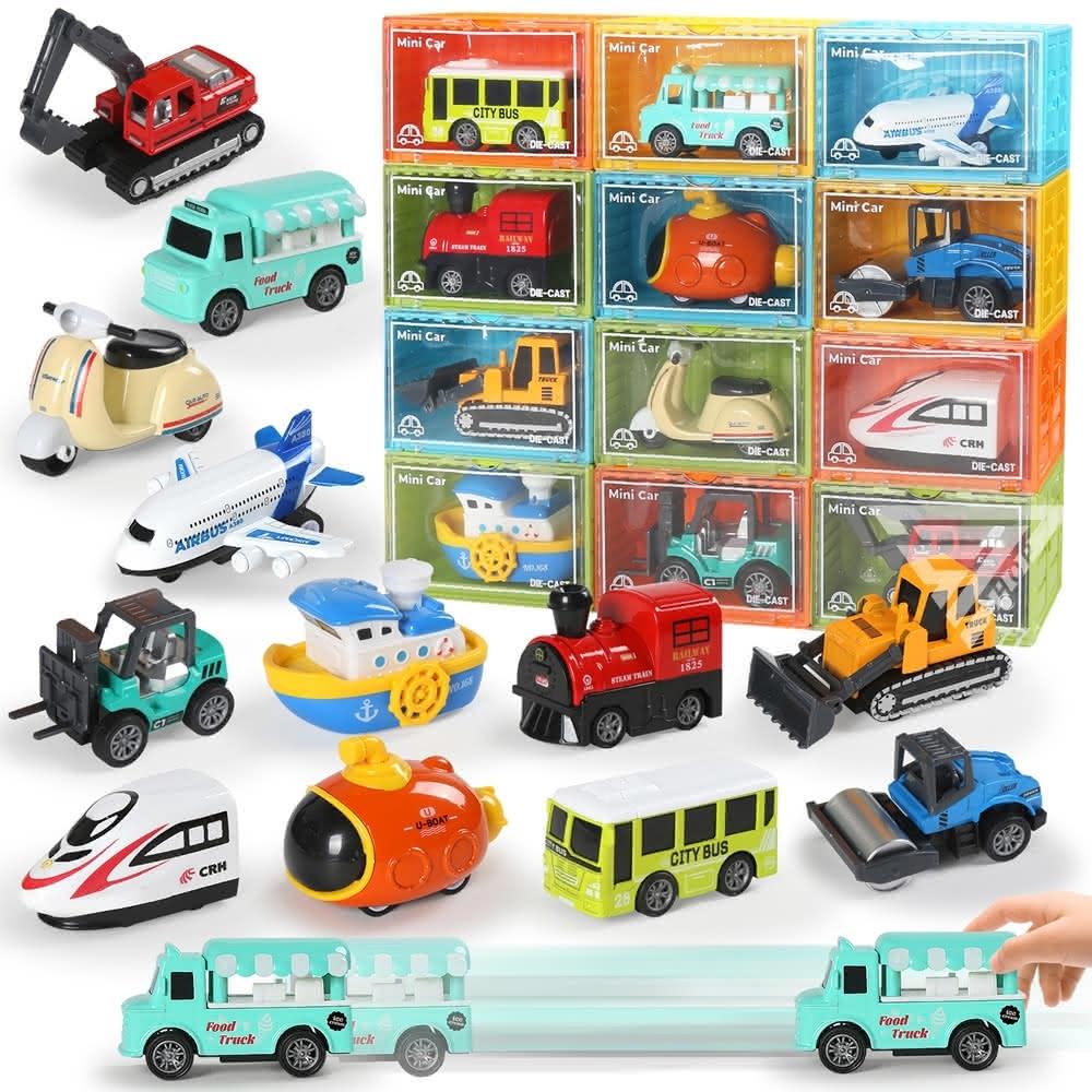 『集裝箱Q版城市合金小車/12款』認知玩具 小汽車 回力合金車 迷你合金車 迴力車 巴士 工程車 摩托車 飛