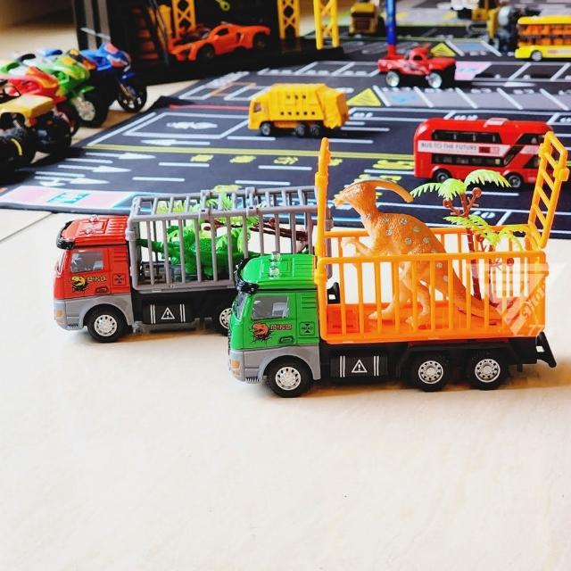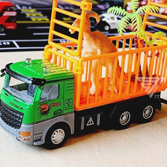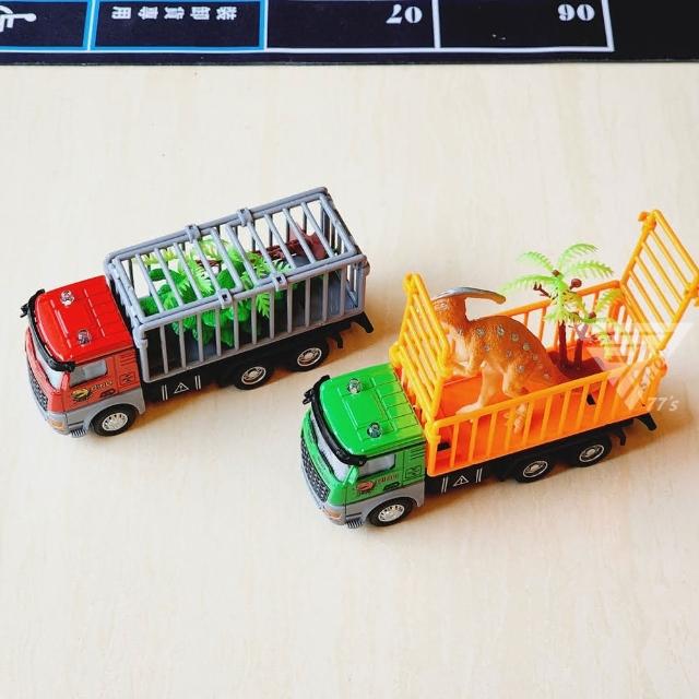『合金恐龍運輸車 迴力車 籠子可開』1:48 恐龍玩具車 恐龍卡車 恐龍運輸籠車 恐龍貨車 運載恐龍玩具 恐