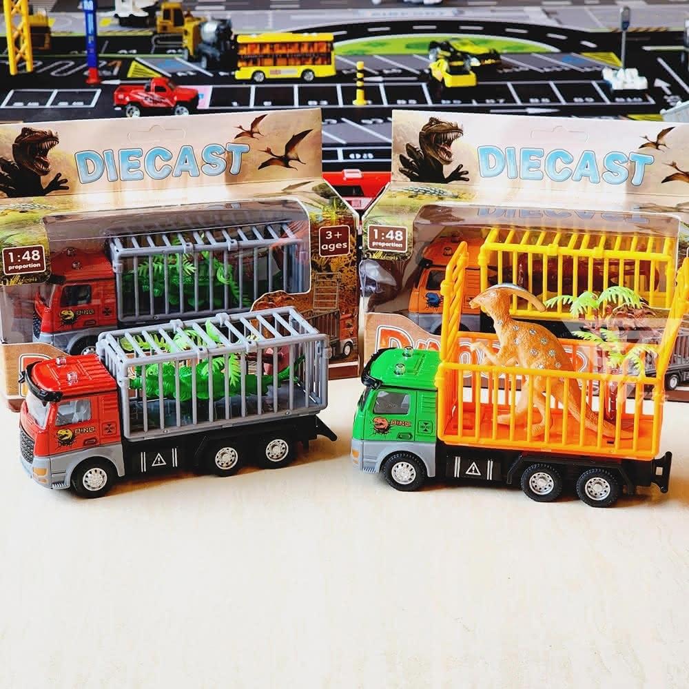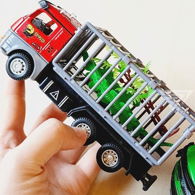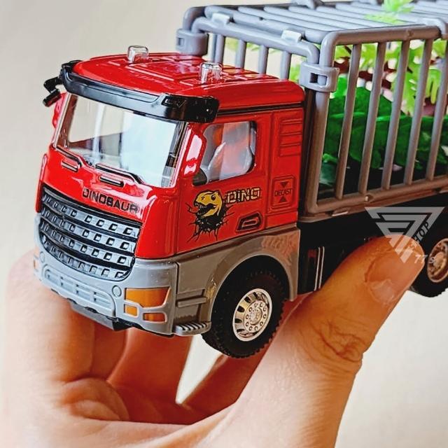 『合金恐龍運輸車 迴力車 籠子可開』1:48 恐龍玩具車 恐龍卡車 恐龍運輸籠車 恐龍貨車 運載恐龍玩具 恐
