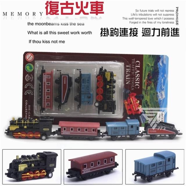 『經典復古蒸汽火車 可串接 /4入一盒』合金小火車 迴力火車 玩具小火車 復古列車 連接小火車 連結火車
