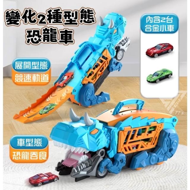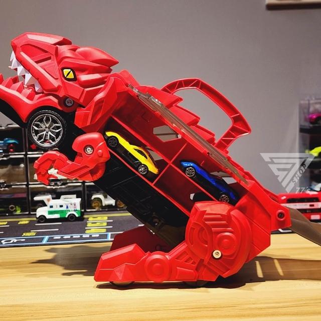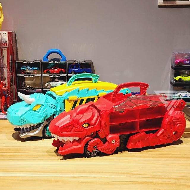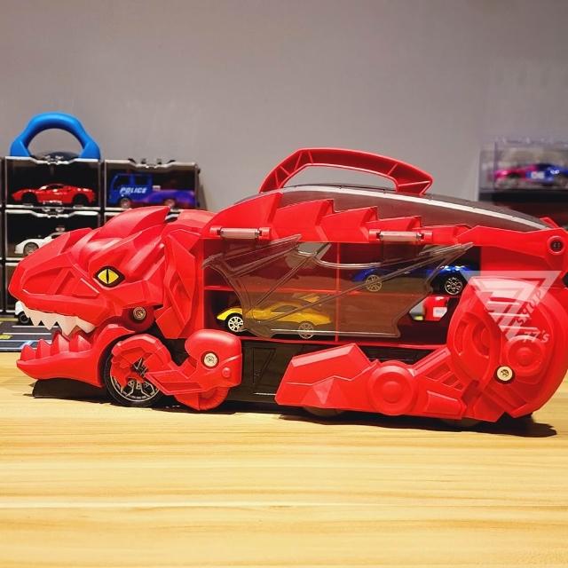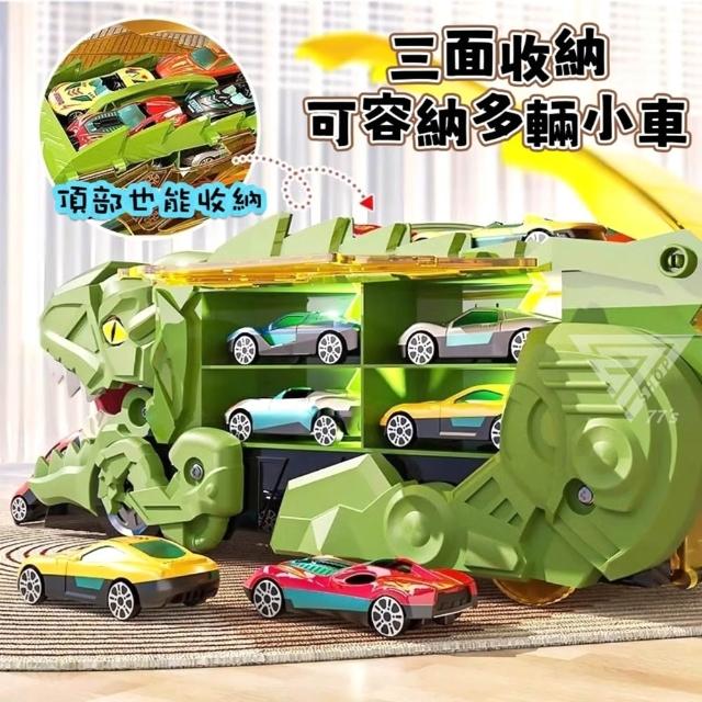 『恐龍吞食車/變形恐龍手提收納車』 軌道玩具 霸王龍 小汽車收納 玩具車收納 變形玩具 迴力車玩具 車車收納
