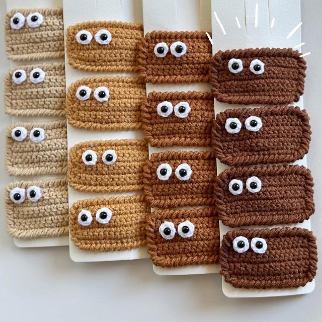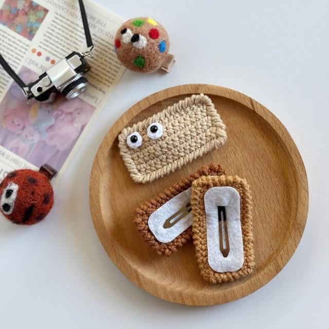 Miss Si 現貨速發 搞怪曲奇髮飾 餅乾髮夾 可愛髮夾 手工毛線編織成品BB側邊夾 卡通頭飾 針織髮夾 鉤針髮夾