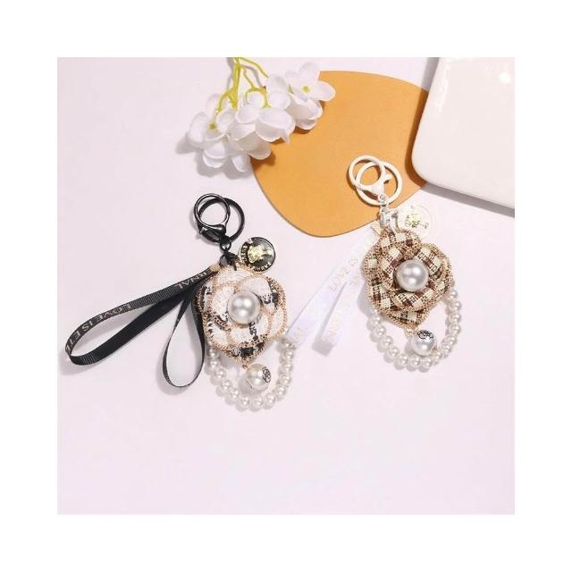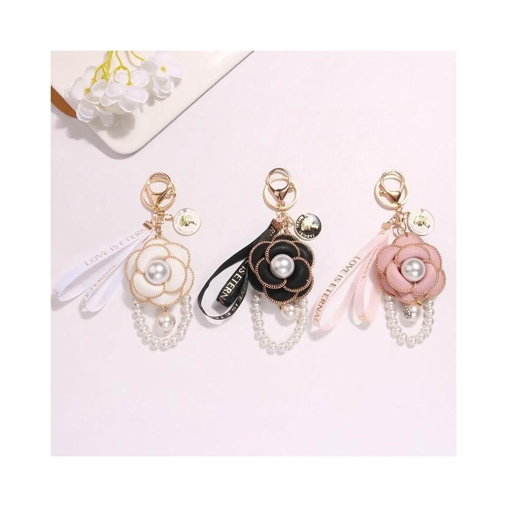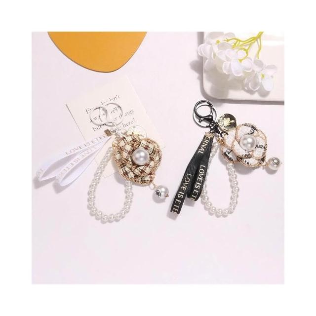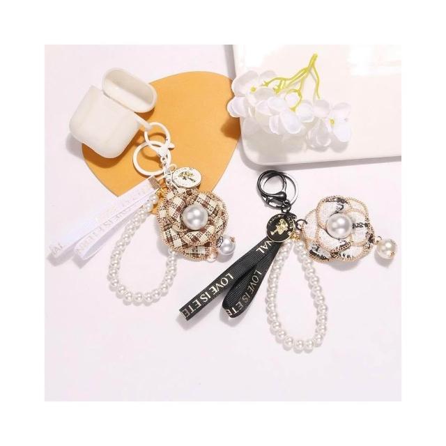 Miss Si 現貨速發 小香風珍珠山茶花鑰匙扣 掛件 創意人頭圓牌配件耳機套包包裝飾 吊飾