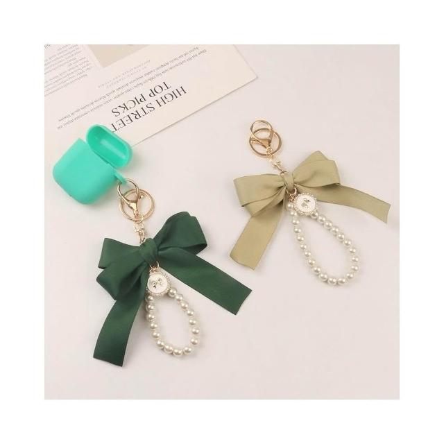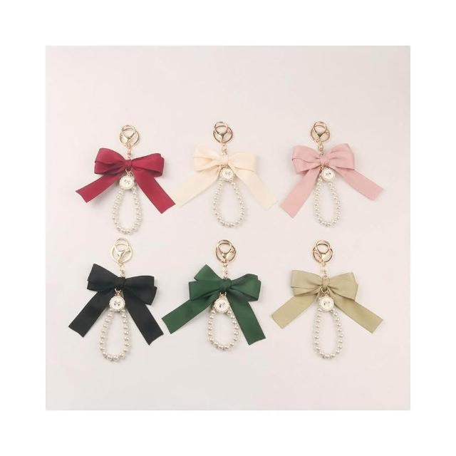 Miss Si 現貨速發 大號蝴蝶結珍珠鑰匙扣 掛件創意彩色織帶布結配件耳機套包配飾 吊飾